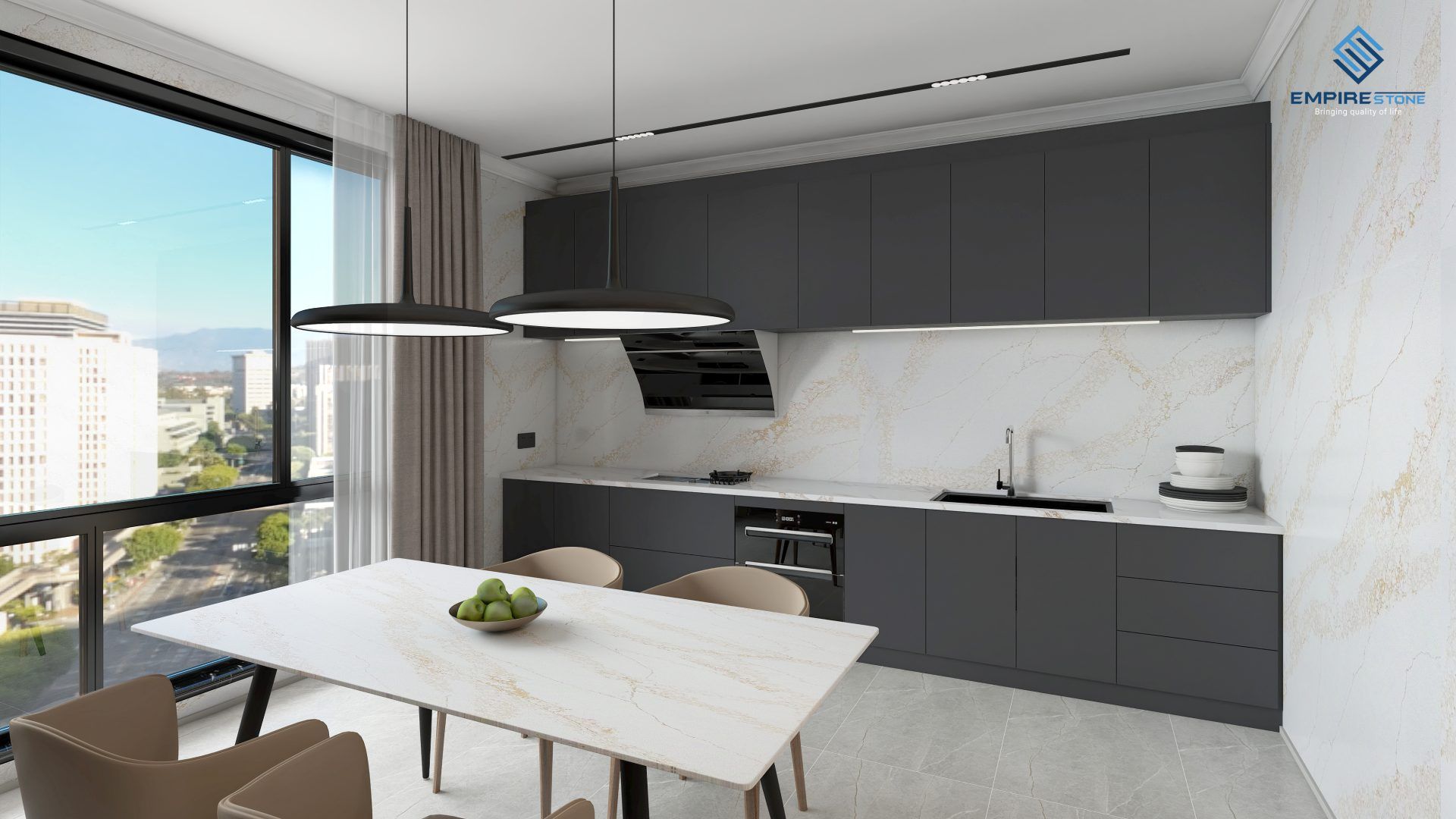 1. Bàn bếp: mặt bàn tủ, mặt bàn làm việc, ốp tường bếp, vv