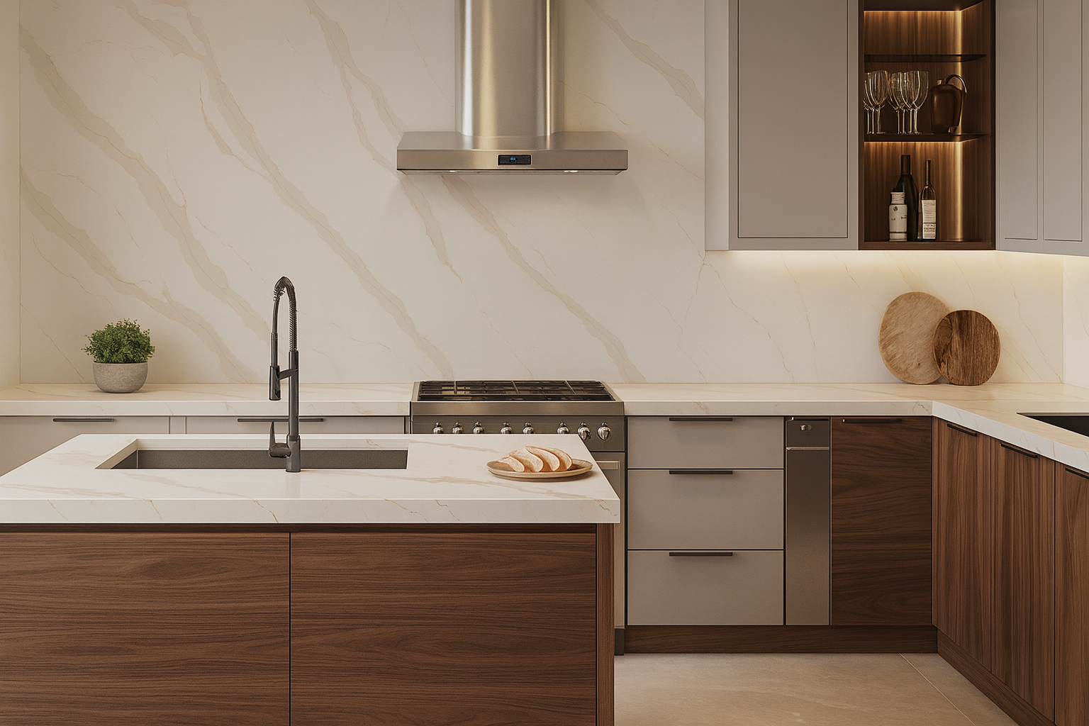 PQ184 – Nimes Gold sở hữu nền trắng kem tinh tế kết hợp những đường vân vàng nhạt mềm mại, mảnh và uyển chuyển, tạo nên vẻ đẹp nhẹ nhàng nhưng sang trọng. Các mạch vân thanh thoát chạy dài tự nhiên giúp không gian trở nên sáng hơn, ấm hơn và mang dấu ấn tinh tế đặc trưng của dòng Calacatta. Đây là lựa chọn lý tưởng cho bàn bếp, bàn ăn, ốp tường và các không gian nội thất phong cách hiện đại – thanh lịch.