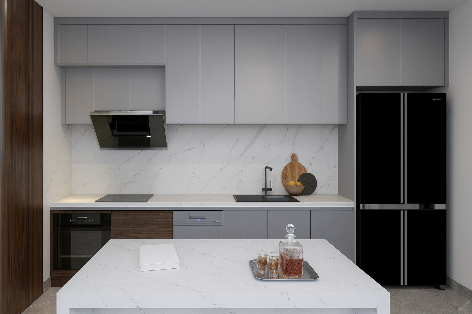 1. Bàn bếp: mặt bàn tủ, mặt bàn làm việc, ốp tường bếp, vv